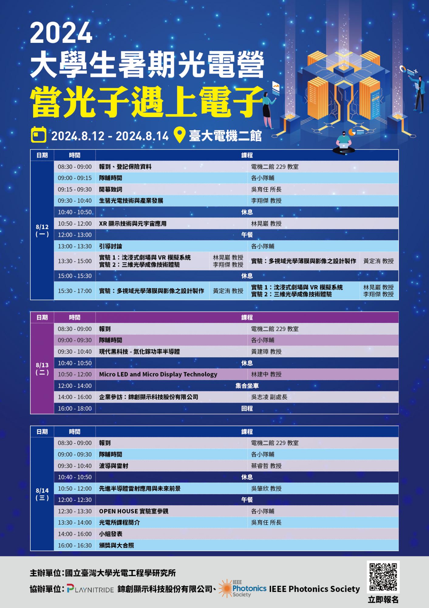 2024光電所暑期大學生光電營開放報名(至7/15截止),歡迎參加! [本系]