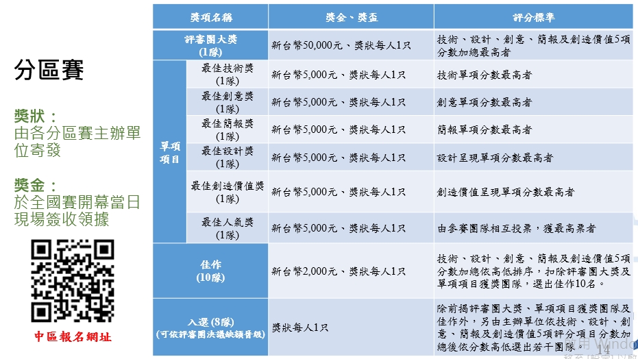 參賽資格:國內技專校院在學學生(學士、碩博生),需檢附在學證明文件。