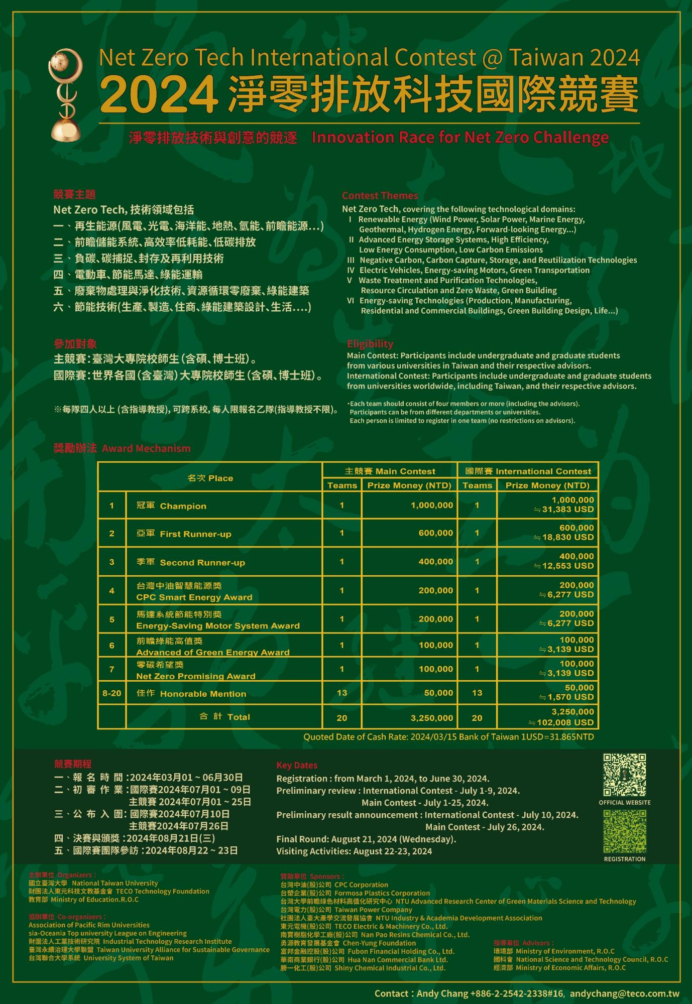 2024淨零排放科技國際競賽 獎金650萬 歡迎報名角逐淨零技術的榮耀 [本系]