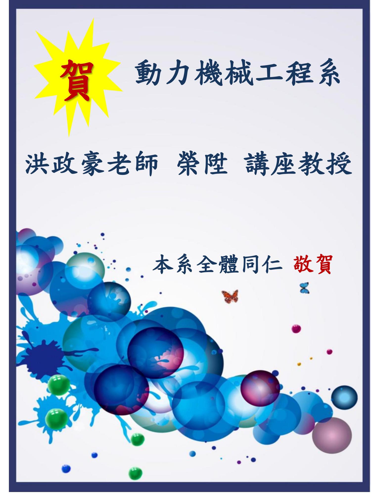 恭賀 洪政豪老師 榮陞 講座教授