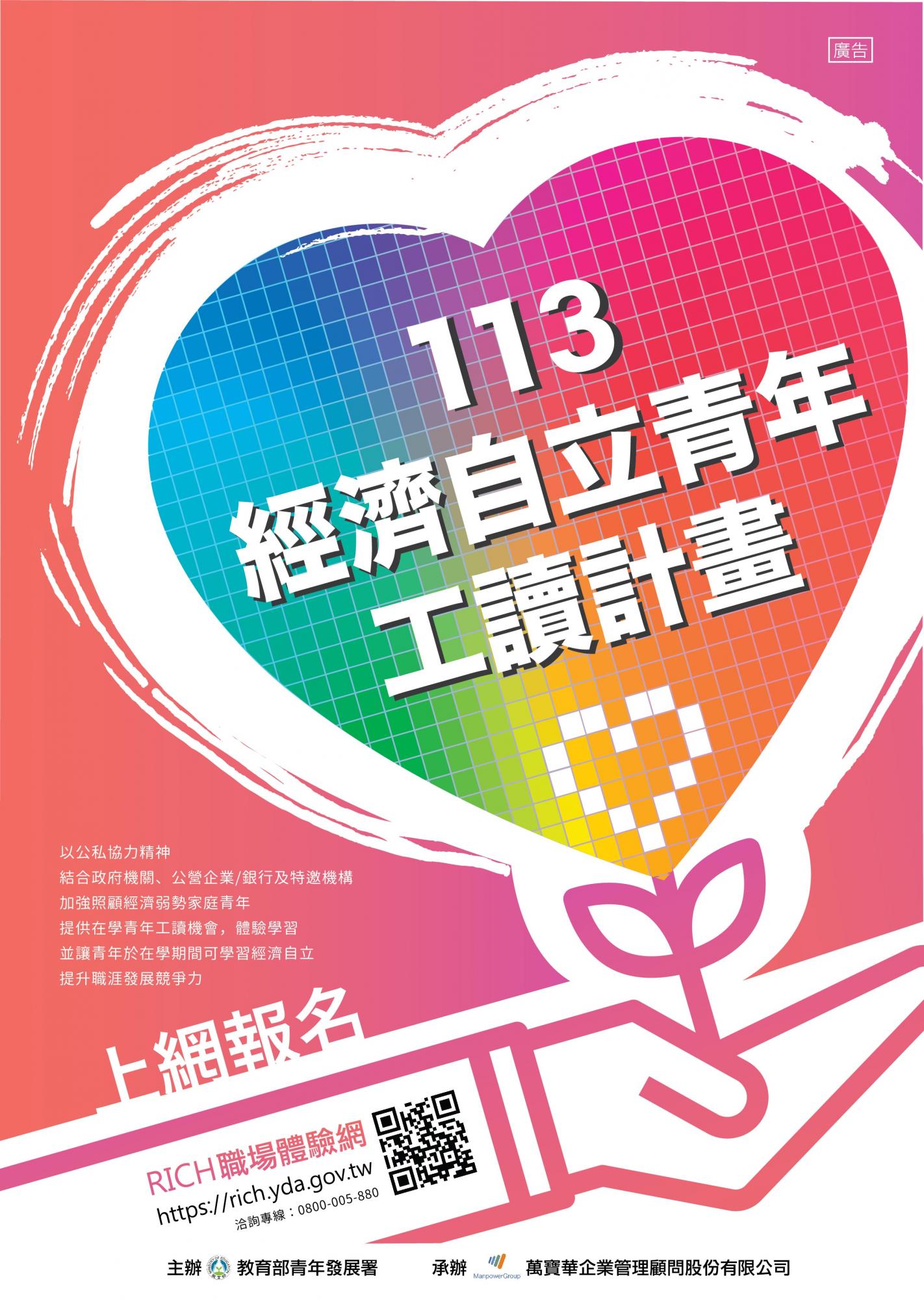 113年經濟自立青年工讀計畫-海報113年經濟自立青年工讀計畫-海報