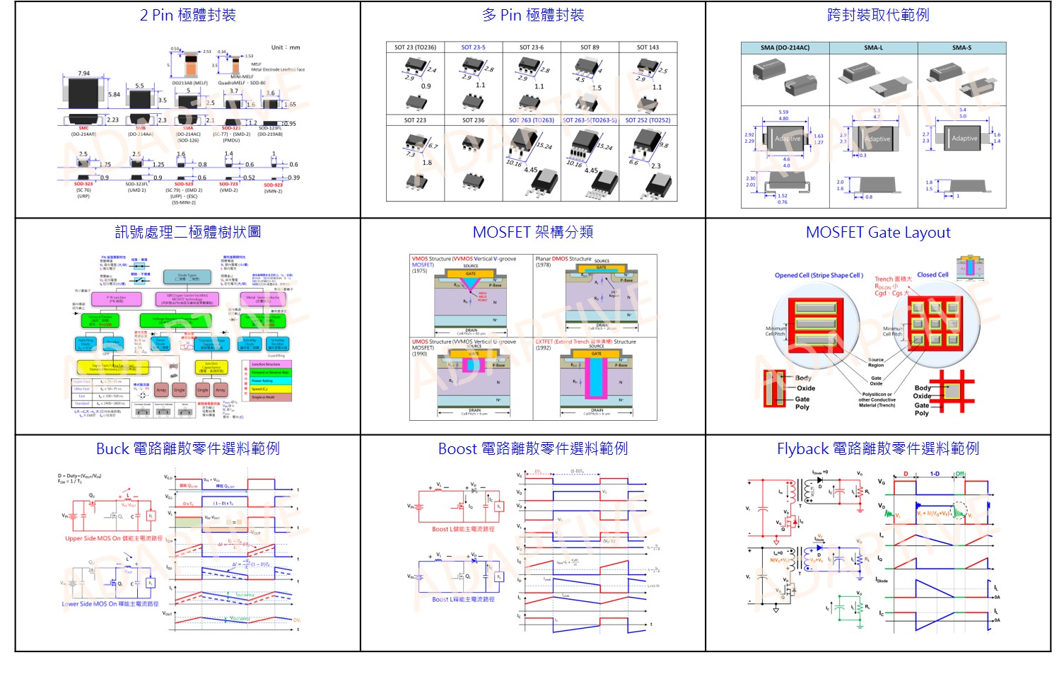 → 定義不同功能 (單向開關、參考電壓、過電壓保護) 二極體的參數管理,以及優缺點比較。